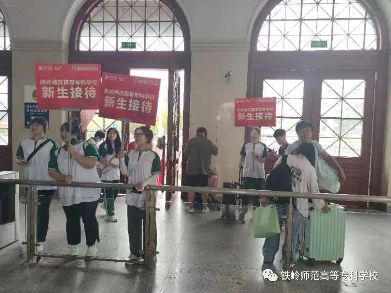 学校在铁岭西站和铁岭站分别设立接站点,接站志愿者现场组织引导新生和家长有序乘车。