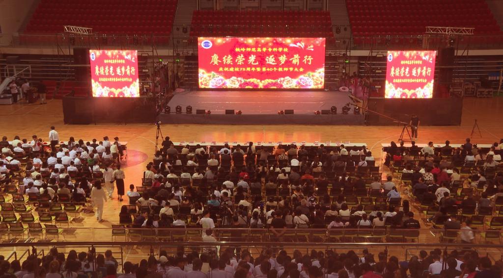 为热烈庆祝建校75周年暨第40个教师节,大力弘扬教育家精神,营造尊师重教浓厚氛围,激励全校教职员工积极投身教育强国建设,9月10日上午9时,学校在体育馆隆重举行“赓续荣光 逐梦前行”——庆祝建校75周年暨第40个教师节大会。