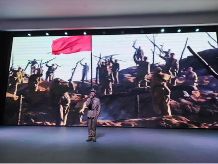本次汇报演出分为三个篇章,均采用“主讲人讲述+红色实践故事+艺术表演”的形式,生动展现了不同历史时期的英雄史诗。第一篇章以“永远传颂的抗日战争英雄故事”为主题,聚焦抗日战争,主讲人深情讲述了杨靖宇、左权、赵一曼等民族脊梁的壮烈事迹。红色实践视频《赵一曼纪念馆》带观众走近英雄故地,感人至深的朗诵《赵一曼写给儿子的家书》字字泣血,一曲激昂的《英雄颂》唱响了对抗战英烈的崇高敬意。